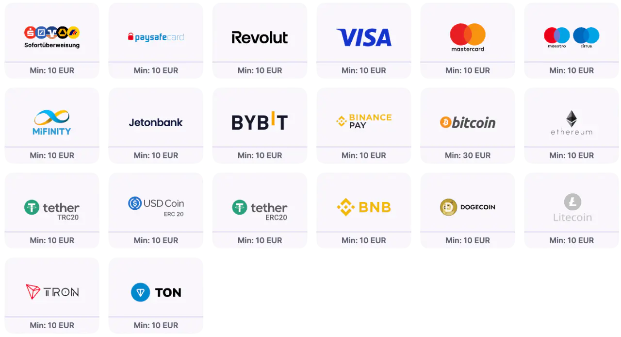 | Visa / Mastercard | ab 10 € | bis 5.000 € | 1–3 Werktage |
